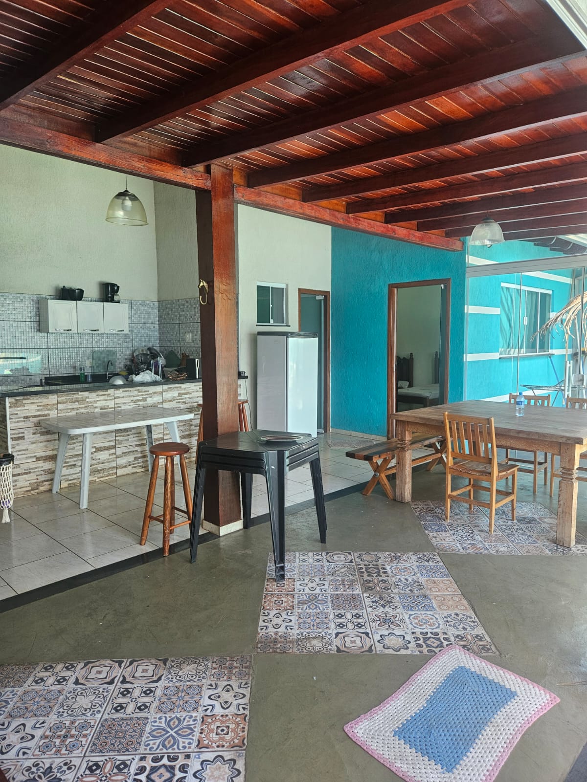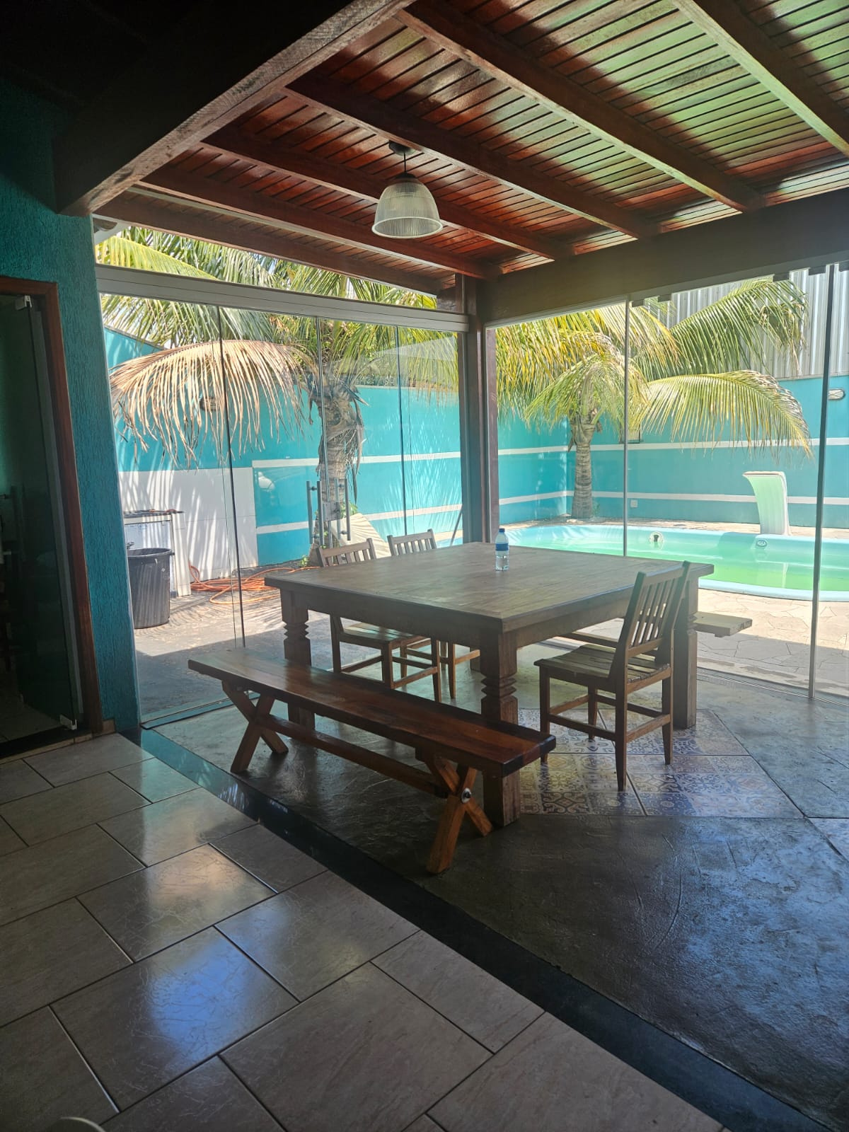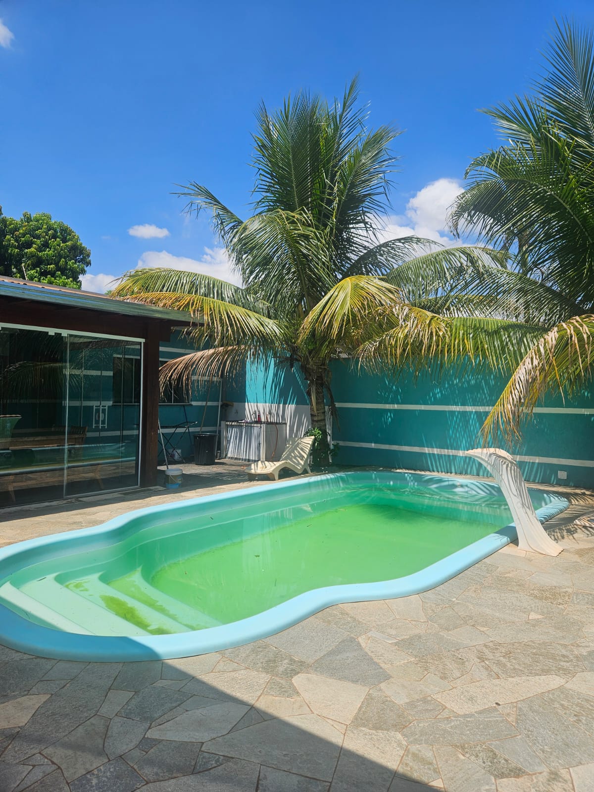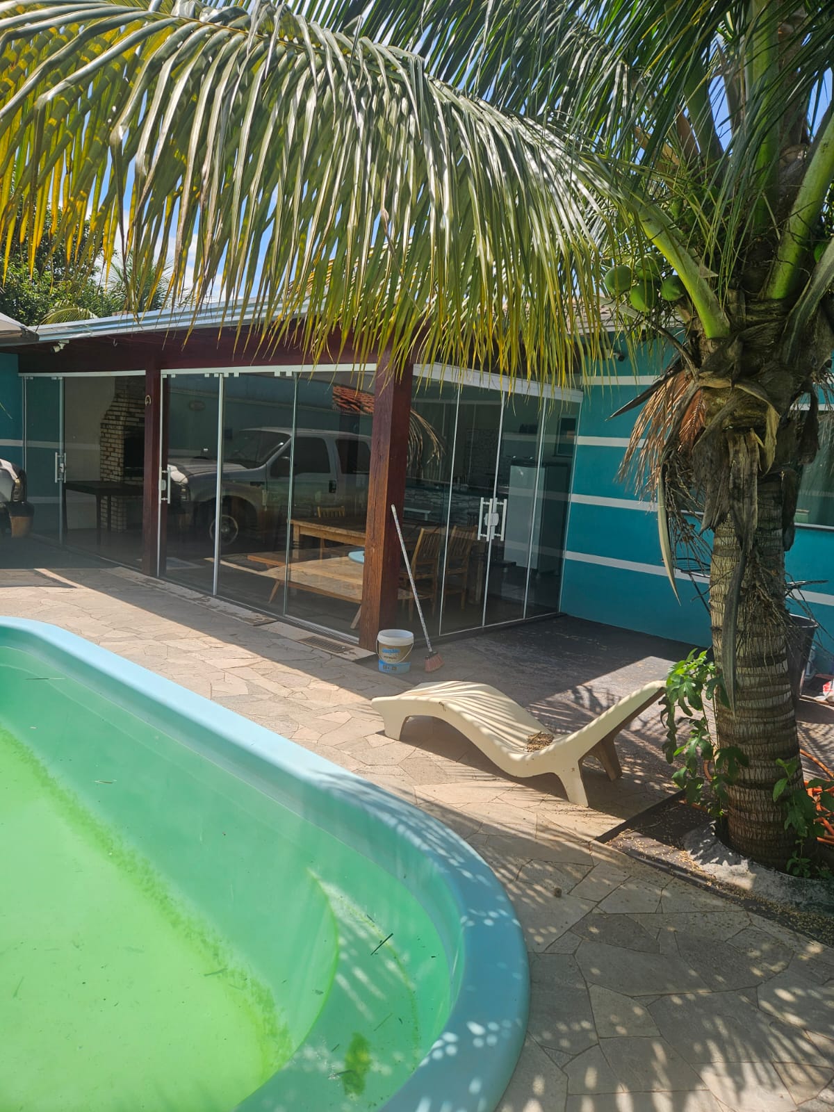 Descrição: 01 quarto, sala e cozinha conjugada, lavanderia e espaço para vários carros com cobertura para um carro, Piscina churrasqueira